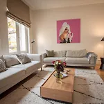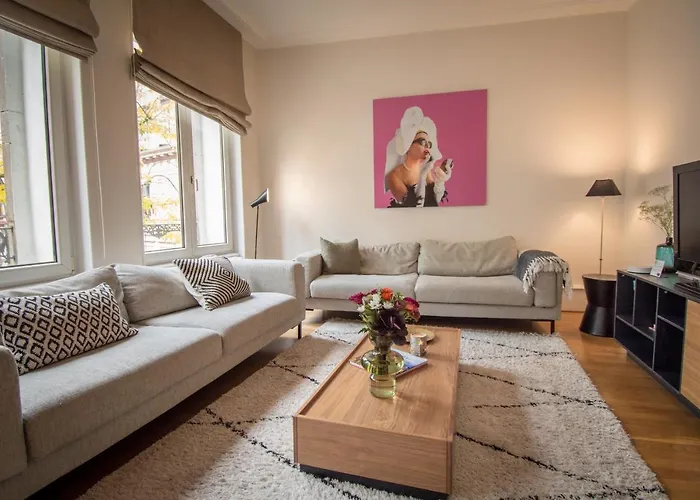 Along with coffee and tea making facilities, the apartment is equipped with an open-plan kitchen that includes a microwave oven, a refrigerator, and kitchenware. The big kitchen is also furnished with a wooden dining table and a dining table. Restaurant Le Petit Bidon and Les Delices Du Maroc can be reached within a walking distance of 5 minutes. The nearest bus stop Square Hansi is very close to the 110 m^2 apartment.